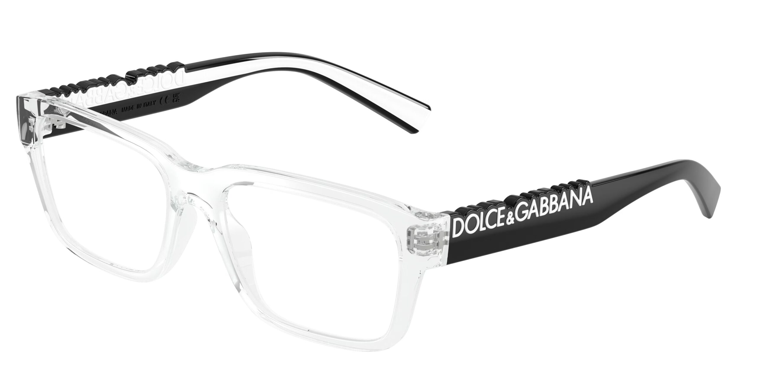 Ο bi-injected σκελετός εμπνευσμένος από τις ελαστικές λεπτομέρειες της μόδας προσφέρει ανθεκτικότητα & ευελιξία, ενώ οι φαρδείς βραχίονες διακοσμούνται με το διάσημο λογότυπο Dolce & Gabbana από rubber, σε ταιριαστά ή έντονα χρωματικά contrast.