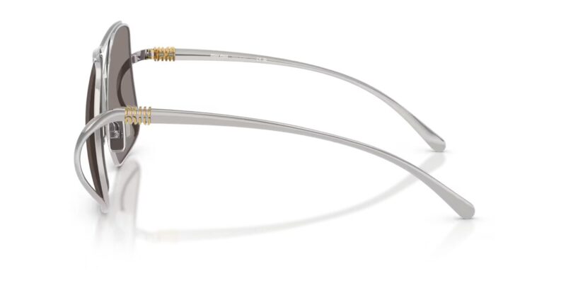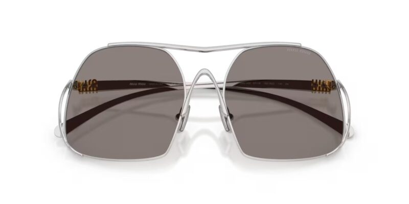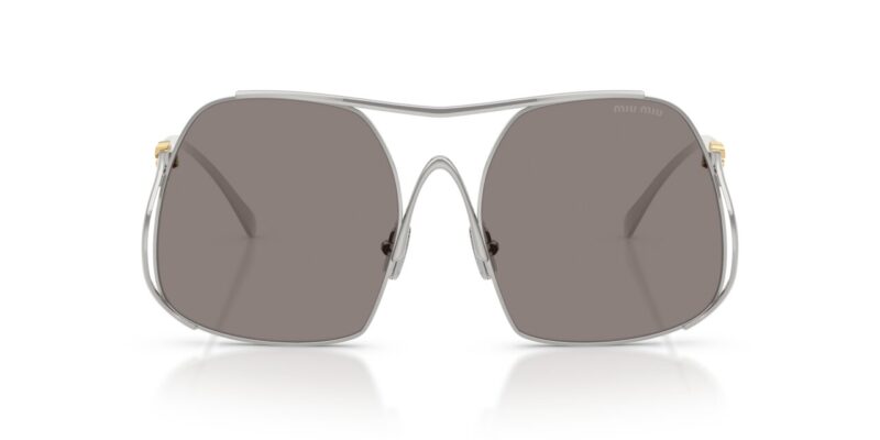 Ανατρεπτικά, μοντέρνα και απόλυτα θηλυκά, τα γυαλιά ηλίου MIU MIU MU A55S 1BC80Q είναι η επιτομή της κομψής διαφορετικότητας. Με έναν ακανόνιστο oversized μεταλλικό σκελετό σε εντυπωσιακό ασημί χρώμα και χρυσό εκλεπτυσμένο λογότυπο MIU MIU σε συνδυασμό με γκρι μονόχρωμους φακούς, αυτό το μοντέλο ενσωματώνει την ελευθερία και τη δημιουργικότητα του οίκου Miu Miu.